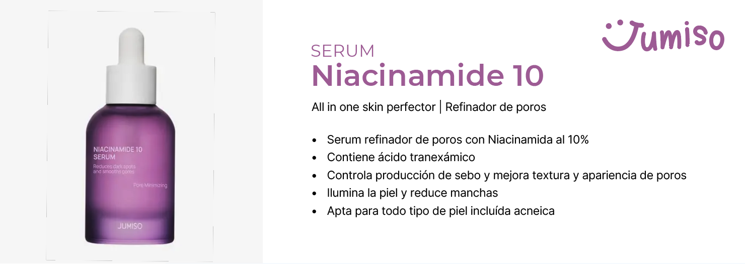 • Controla producción de sebo y mejora textura y apariencia de poros